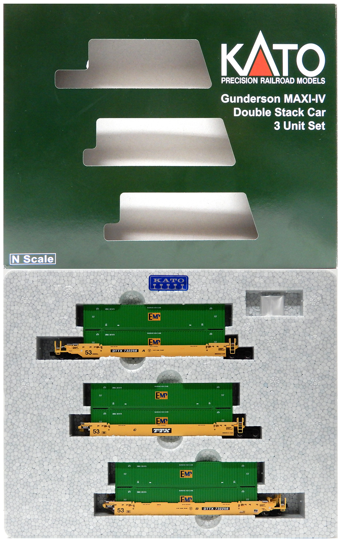 KATO #106-6187 Gunderson MAXI-IV Double Stack Car TTX Original Logo #DTTX 732256 w/ EMP Containers - 現在表示中
