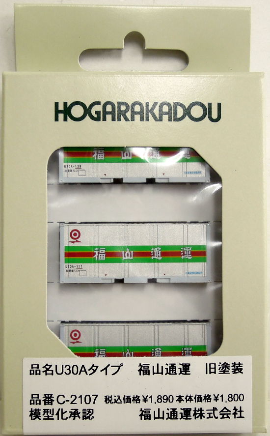 - 【中古】1/150(Nゲージ) HOGARAKADOU(朗堂) C-2107 20fコンテナ U30Aタイプ 福山通運 旧塗装 (3個入り)
