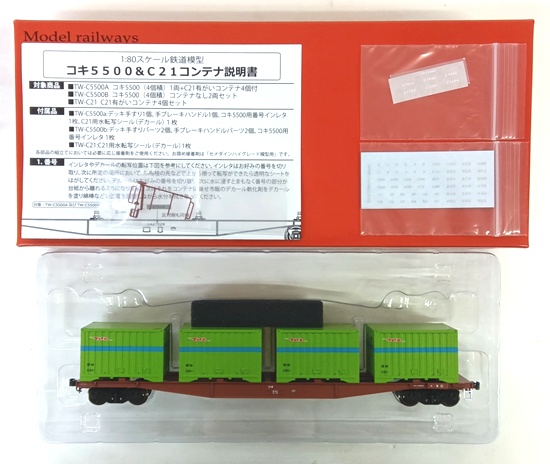 - 【中古】1/80(HOゲージ) トラムウェイ TW-C5500A コキ5500(4個積)1両 + C21有がいコンテナ4個付