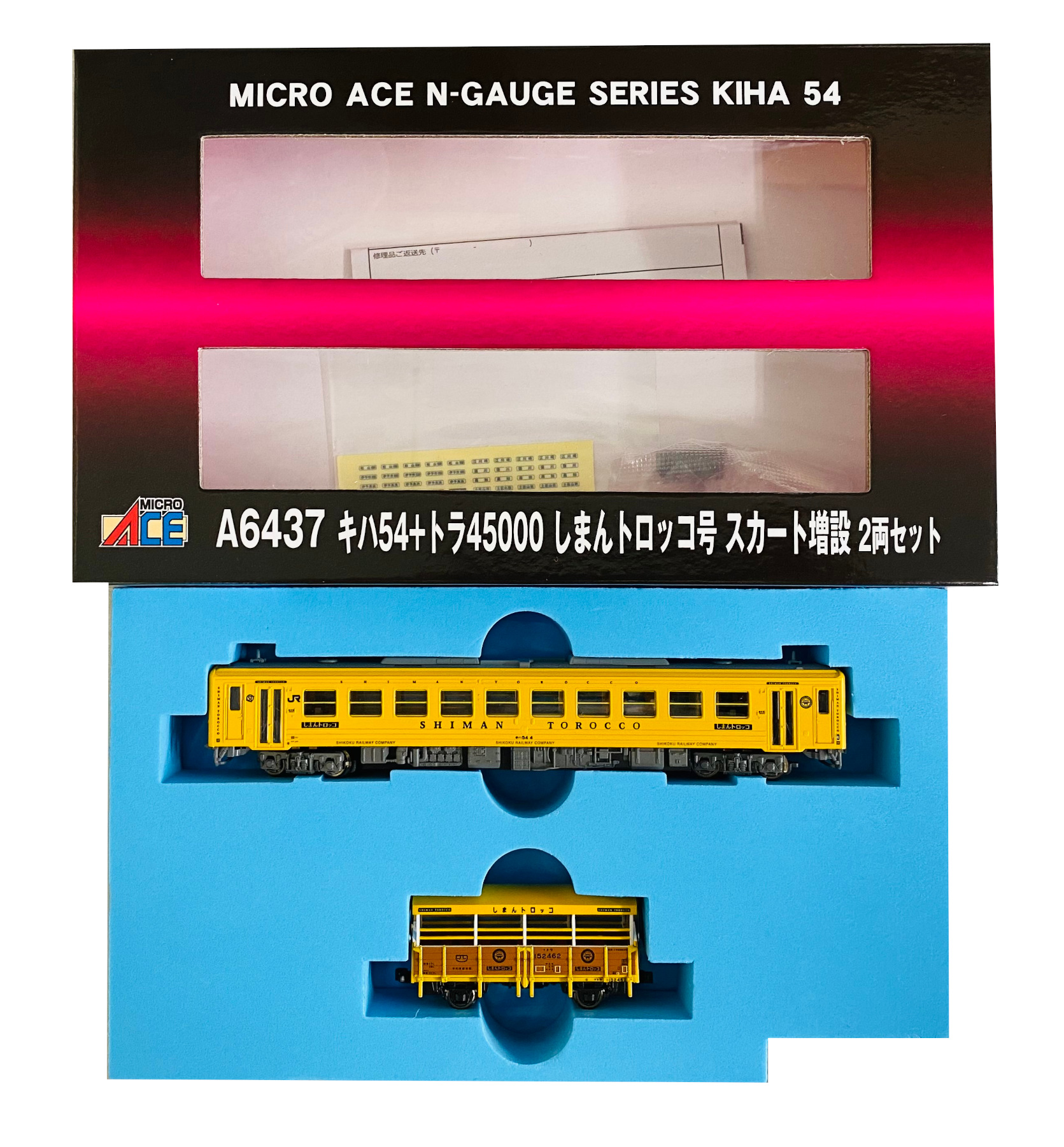 - 【中古】1/150(Nゲージ) マイクロエース キハ54 + トラ45000 しまんトロッコ号 スカート増設 2両セット 1次ロット