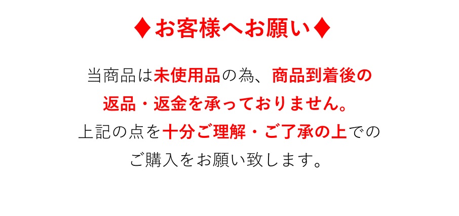 ・当店ではお客様都合によるキャンセル・返品・交換等は一切ご遠慮いただいております。商品状態、金額等に十分ご納得いただいた上でのご注文をお願いいたします。