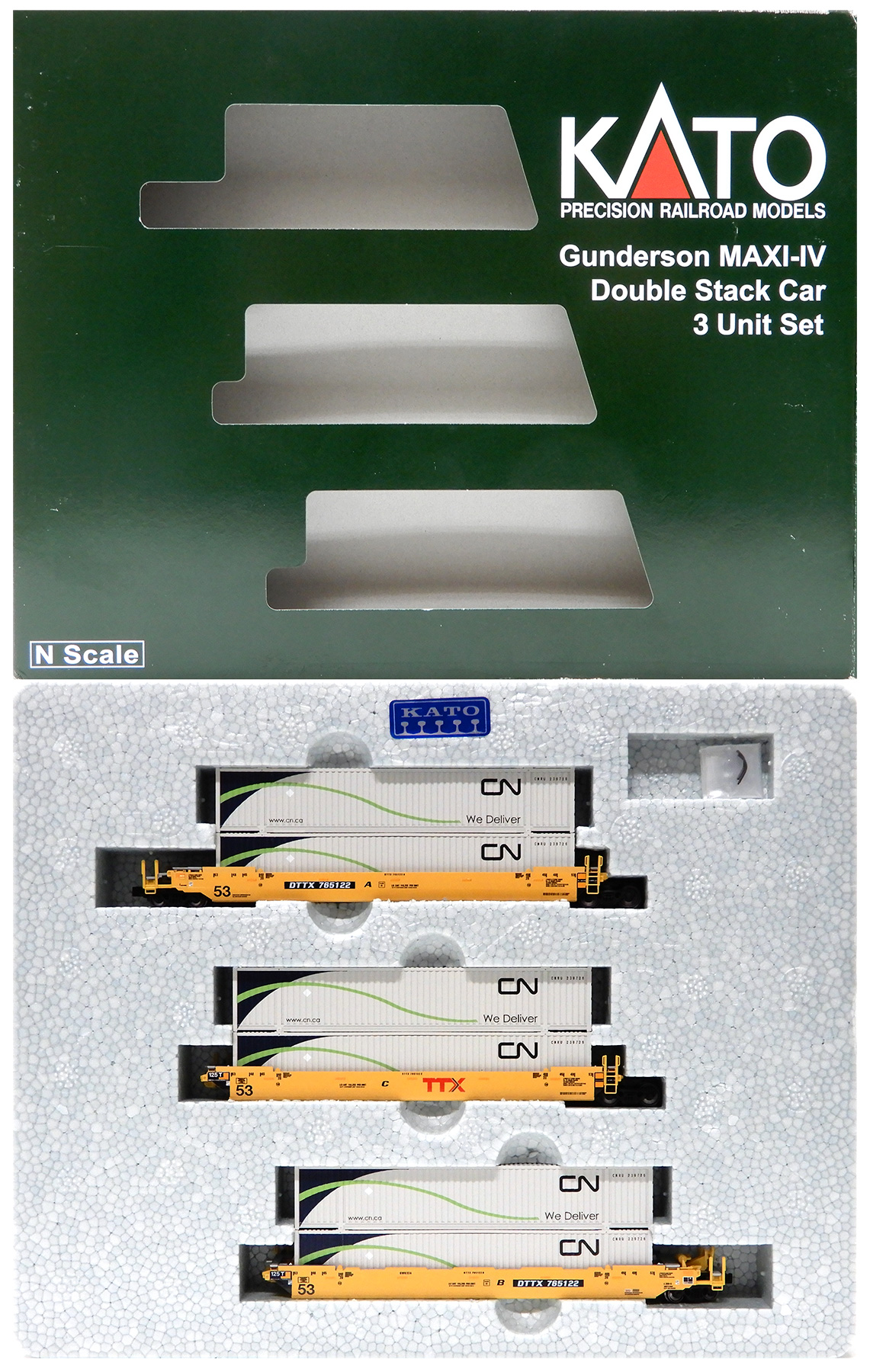 - 【中古】(Nゲージ) その他 外国型車両 KATO #106-6187 Gunderson MAXI-IV Double Stack Car TTX Original Logo #DTTX 732256 w/ EMP Containers