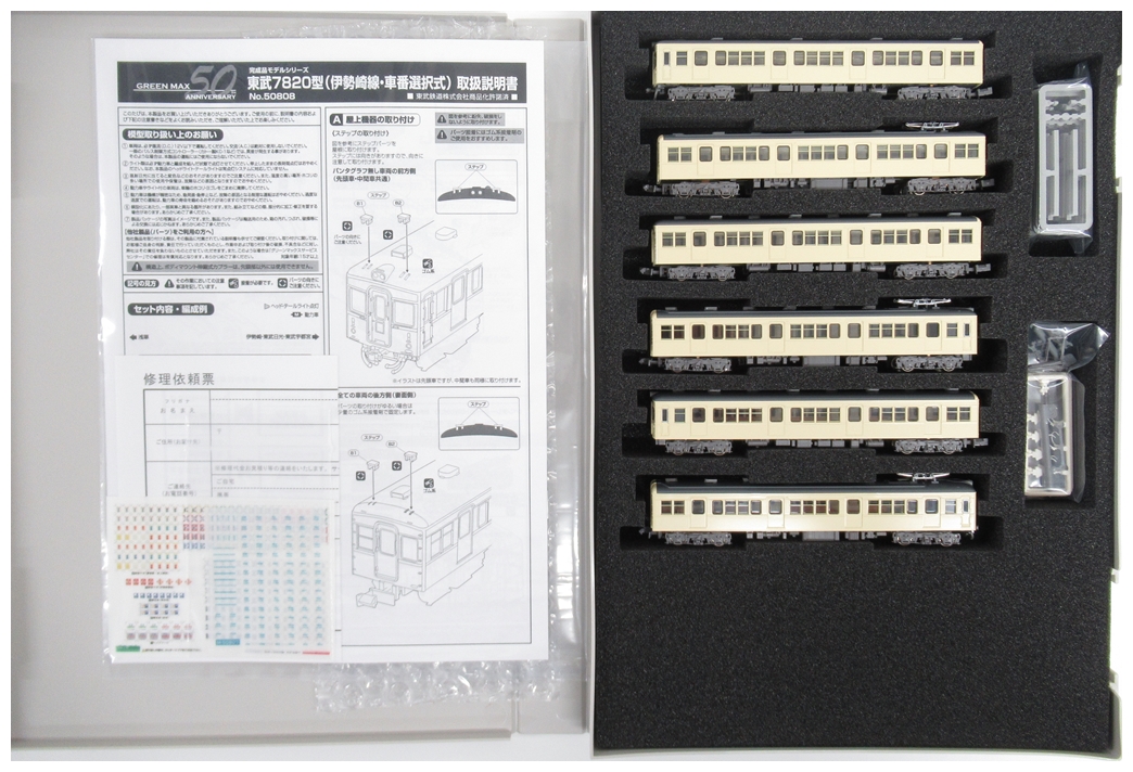- 【中古】1/150(Nゲージ) グリーンマックス 50808 東武7820型(伊勢崎線・車番選択式) 6両編成セット(動力付き)