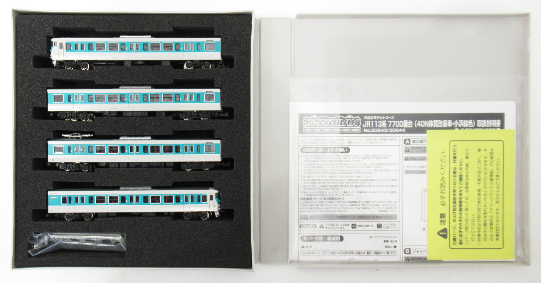 - 【中古】1/150(Nゲージ) グリーンマックス 30643 JR 113系7700番台 (40N体質改善車小浜線色W1編成) 4輛編成セット (動力付き)